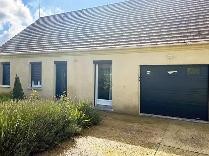 La porte de garage installée est un modèle en acier, avec une finition peinture époxy RAL 7016 qui lui confère un aspect moderne et durable. Elle est garantie 10 ans, preuve de sa robustesse et de la qualité de fabrication. Les panneaux sont isolants, et les hublots en double vitrage retardateur d’effraction assurent à la fois luminosité et sécurité. Son design exclusif, propre au fabricant, apporte une touche d’originalité à la façade. La motorisation intégrée est équipée d’une batterie de secours, et le blocage moteur anti-effraction renforce la protection de l’habitation. L’ensemble a été posé avec soin par nos menuisiers poseurs, dans le respect des finitions et de l’intégration esthétique.